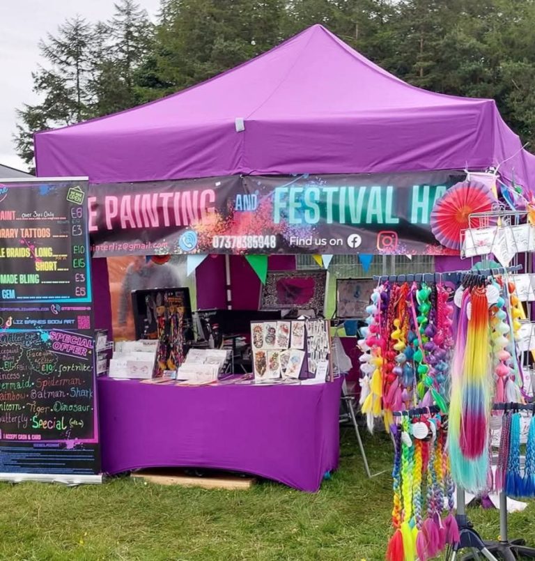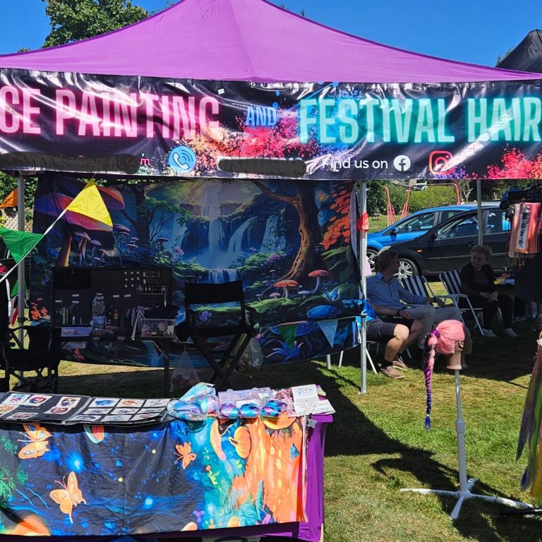 Festival Hair and Faces is a vibrant, reliable, and crowd‑pleasing addition to any event. With a visually striking neon‑festival aesthetic, fast turnaround times, and services suitable for all ages, my stall consistently draws attention and keeps visitors engaged.
