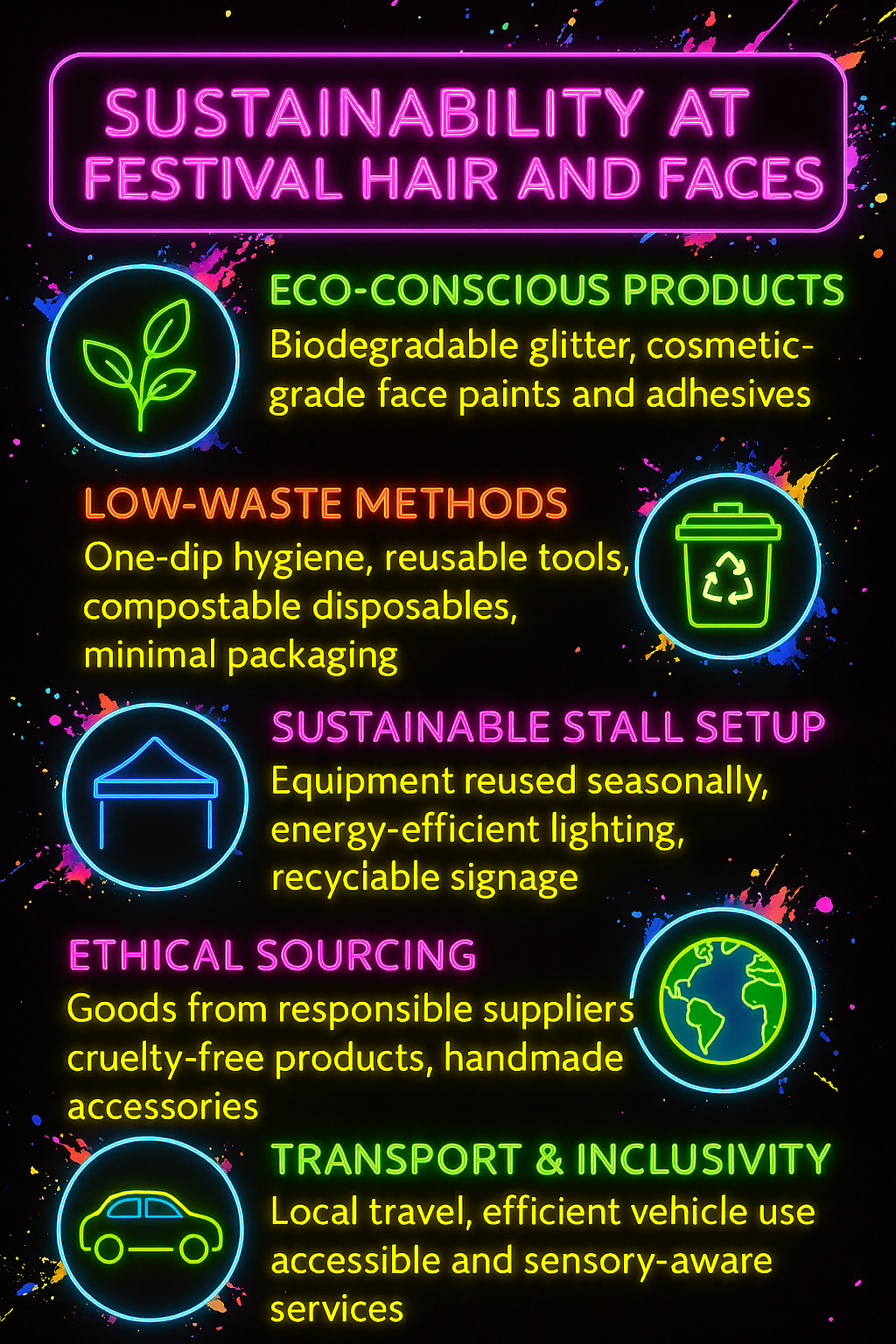 Award‑winning face painting using FDA‑approved, vegan‑friendly paints suitable for all ages.